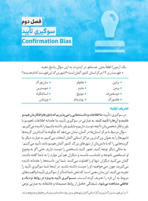در کتاب پیش رو کوشش شدهاست تا 25 سوگیریهای شناختی معرفی و راهکار هایی برای تشخیص و اصلاح آنها پیشنهاد شود. این کتاب بر تلاش آگاهانه برای گیر نیفتادن در دام سوگیریهای شناختی تأکید میکند. البته باید بدانیم به دلیل ماهیت تکاملی سوگیریهای شناختی، گرفتار شدن در دام اغلب آنها، اجتناب ناپذیر است. پس اگر شما هم مشتاق هستید تا با سوگیریهای شناختی خود آشنا شوید، این کتاب انتخاب خوبی برای شما خواهد بود.