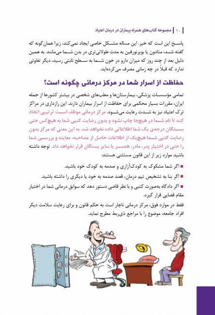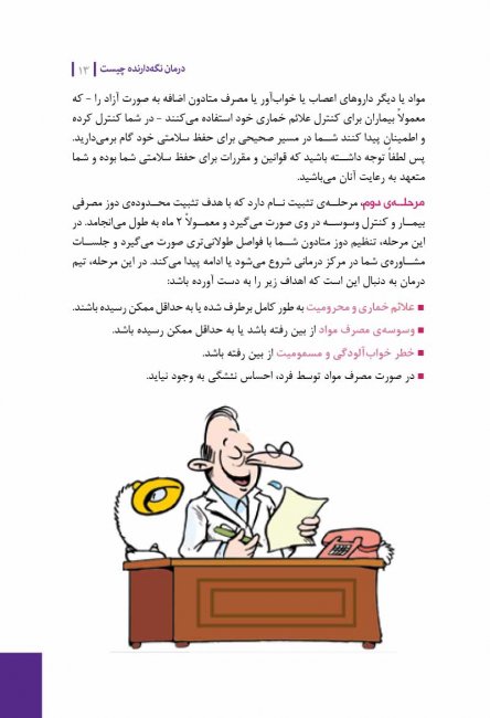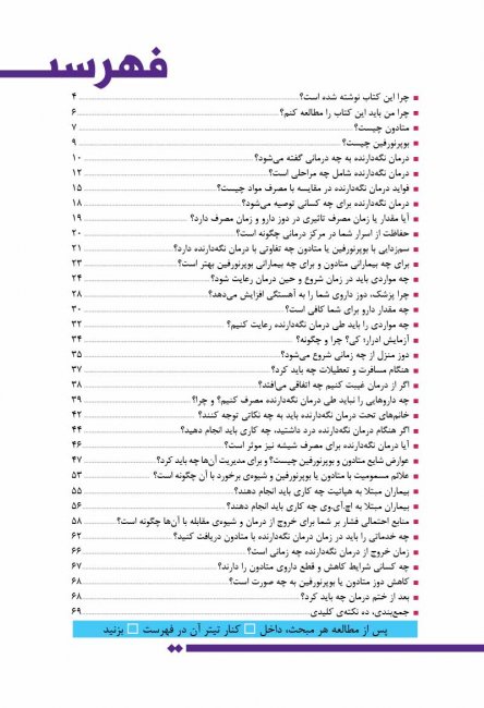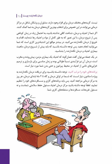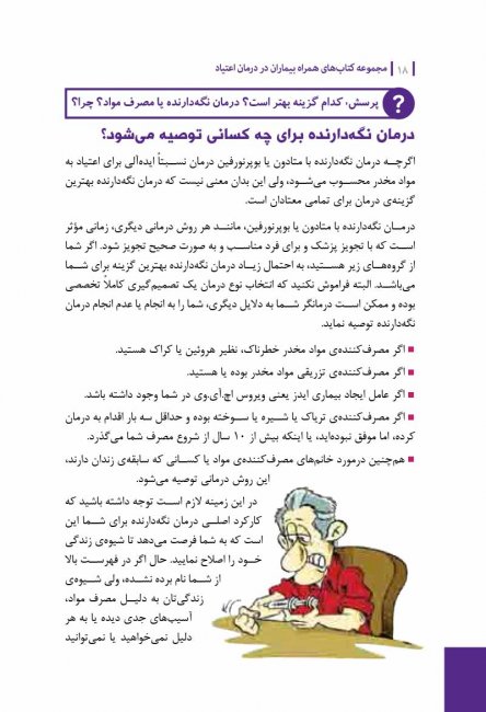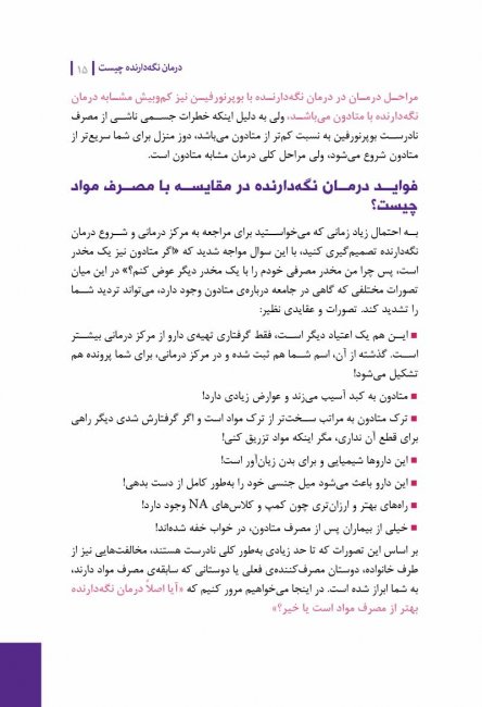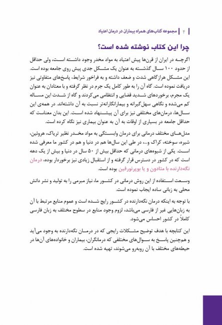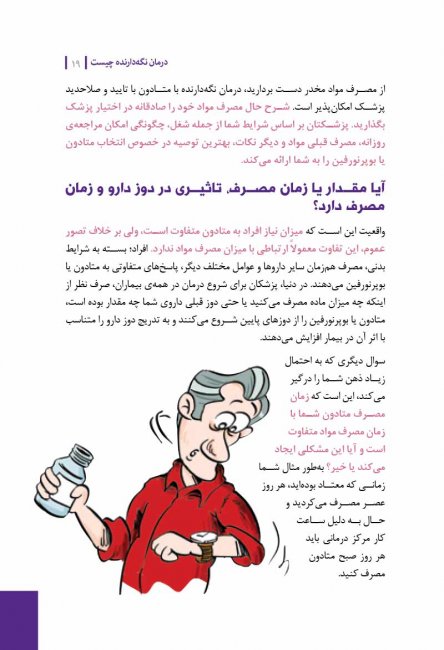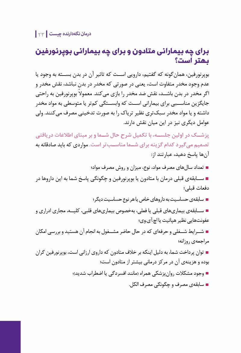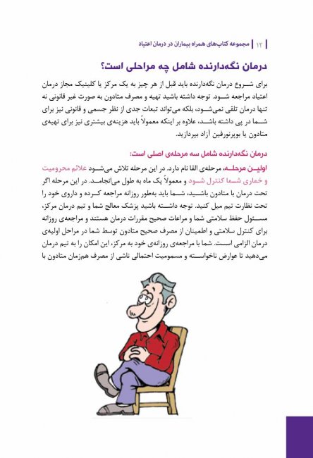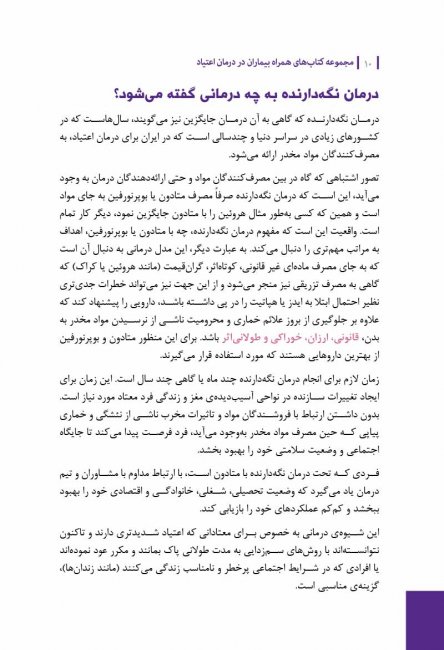 درمان نگهدارنده با متادون یا بوپرنورفین از بهترین گزینههای درمانی برای افرادی است که دچار بیماری اعتیاد به مواد مخدر نظیر کراک، تریاک و هروئین شدهاند. اطلاع بیماران از نحوه اجرای این درمان و وظایف متقابل بیمار و تیم درمانگر در اجرای صحیح این درمان میتواند بسیار حیاتی باشد، این کتاب در حجمی کم و به زبان ساده و با بهرهگیری از تصاویر رنگی، اطلاعات لازم را در اختیار مخاطبان این درمان قرار میدهد.