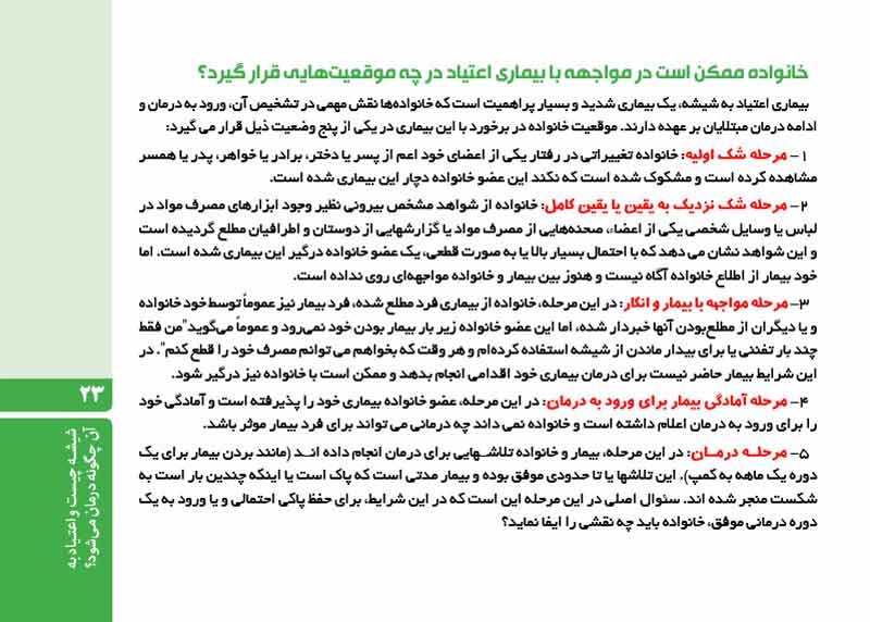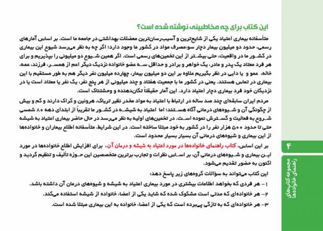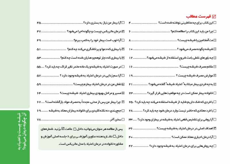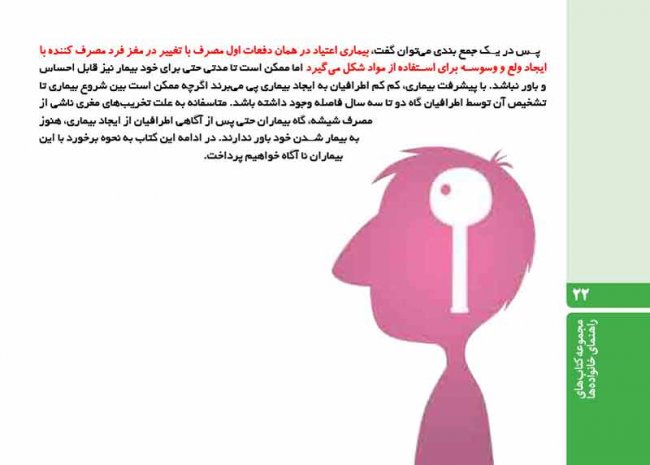 درمان اعتیاد به خصوص درمان نگهدارنده درمانی طولانی است که نتایج درمانی آن برای بیمار و به خصوص خانواده بیمار به مرور مشهود می شود.تنها بودن بیمار شما در مسیر درمان از کارآیی درمان کاسته و تنهایی بیمار می تواند آسیب جدی به فرایند درمان بزند.این کتاب بدین منظور نوشته شده است تا شما به عنوان خانواده بیمار بتوانید همراه و همسفری مطمئن در مسیر بهبودی بیمار خود باشید.مطالعه این کتاب زمان زیادی را از شما نمی گیرد و لی به کاربردن توصیه های آن که با استفاده از تجربیات جهانی و در نظر گرفتن شرایط بیماران ایرانی نوشته شده است می تواند دستاوردهای بزرگی را برای شما و بیمارتان به همراه داشته باشد.