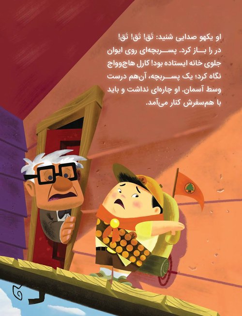 او یک عالمه بادکنک به دودکش خانه بست تا بتواند پرواز کند و برود بالا و برسد به آبشار بهشت! راسل، پسربچهی ماجراجو، همسفرش میشود. آنها توی راه موجودات عجیبی میبینند.