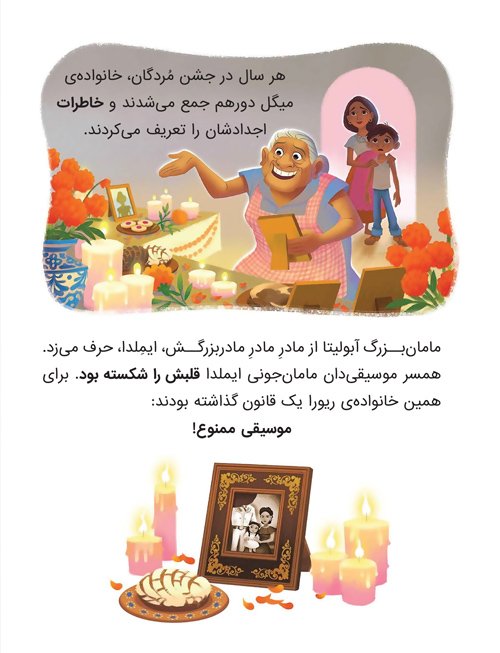 میگل به شهر مردگان میرود. او به هر دری میزند تا دوباره به دنیای زندگان برگردد. میگل پدرِ پدرِ پدربزرگش را آنجا پیدا میکند.