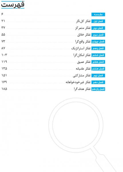هر فصل این کتاب روی یکی از یازده نوع تفکر متمرکز شدهاست:
