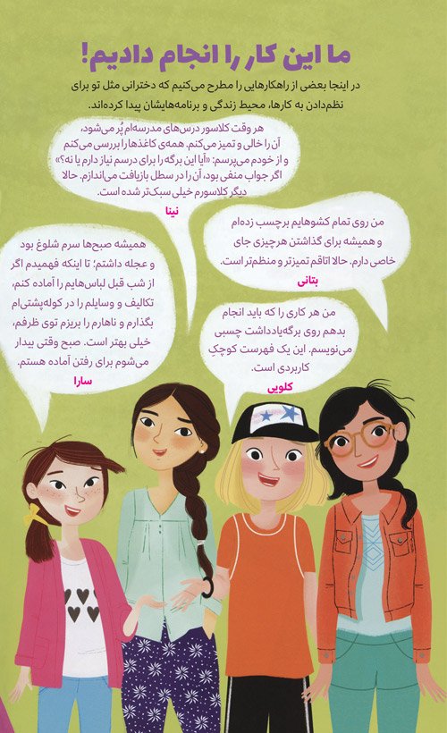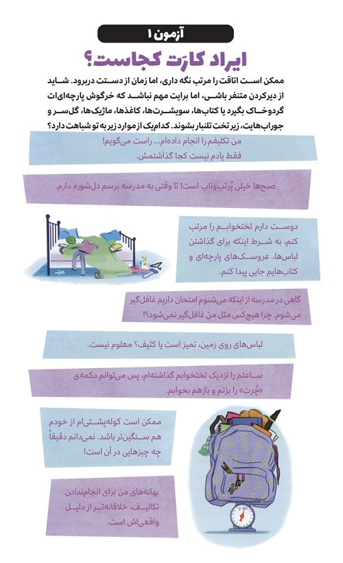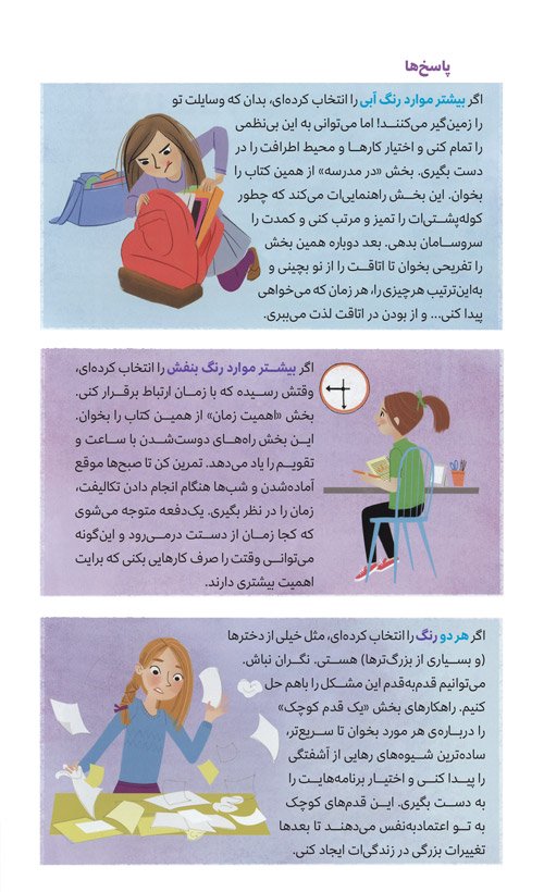خبر خوب اینکه میتوانی با چند ترفند به همهی کارها و برنامههایت برسی. اینجوری بحران بینظمی هم تمام میشود. البته زمان میبرد تا بتوانی روی برنامهها و محیط اطرافت مسلط شوی. وقتی اصول برنامهریزی را در این کتاب خواندی، میتوانی سراغ طرحها و نقشههای خودت بروی و آنها را هم امتحان کنی.