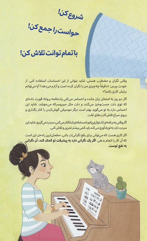 شده تابه حال نگران شده باشی؟ اینکه ممکن است کارها آن طوری که میخواهی پیش نرود و اتفاقهایی بیفتد که دلت نخواهد؟ راستش دنیا هیچ وقت خالی از نگرانی نیست؛ حتی وقتهایی که فکر میکنی همه چیز گلوبلبل است، بازهم گاهی انگار توی دلت رخت میشویند! همهی ما نگران میشویم. بعضی وقتها چنان سربع سروکلهی نگرانی پیدا میشود که فکر میکنیم قرار نیست هیچوقت دست از سرمان بردارد. میخواهی بدانی وقتی دلت مثل سیروسرکه میجوشد باید چه کار کنی؟ اگر این کتاب را خوب بخوانی، یاد میگیری حتی وقتهایی که دلشوره سراغت میآید، دلسرد نشوی و با آرامش و اطمینان خاطر برای رسیدن به رؤیاهایت تلاش کنی. آنوقت دیگر نگرانیها نمیتوانند سدِ راهت شوند.