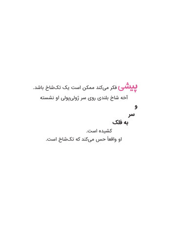 پیشیکوچولو فکر میکند ممکن است یک تک شاخ باشد، آخه شاخ بلندی روی سر ژولی پولی او نشسته.