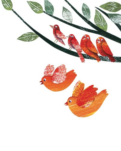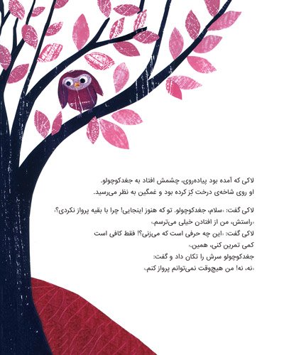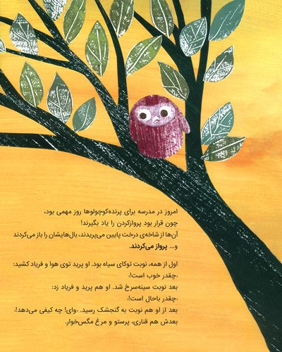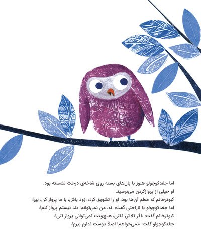 همهی پرندهها به نوبت پریدند، اما جغدکوچولو راستی راستی از پروازکردن میترسید.