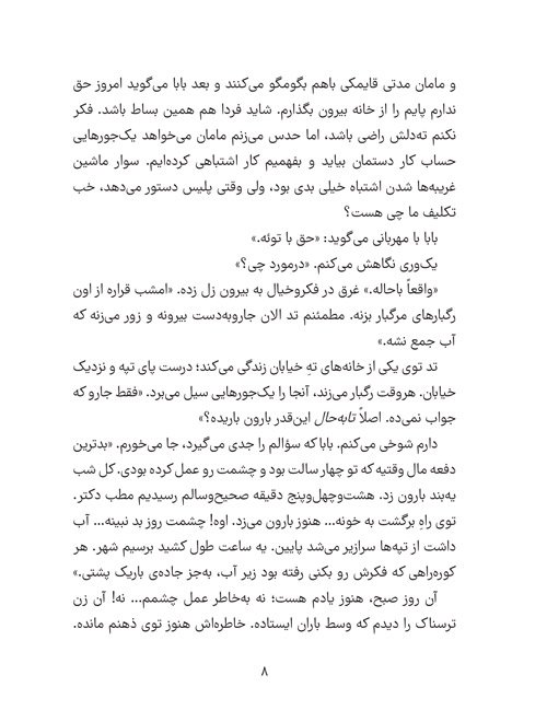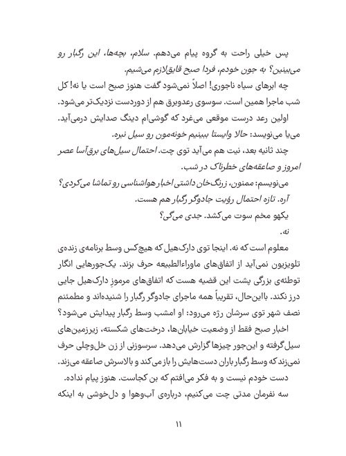 رگبار باران به شیشه ی پنجره می کوبد. رعدوبرق جولان می دهد.