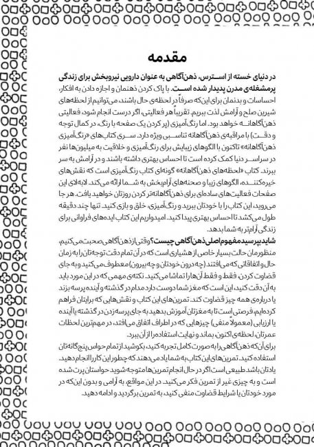 «ذهنآگاهی با رنگآمیزی» نوعی کتاب رنگآمیزی بزرگسالان است که شامل طرحهای خیره کننده، الگوهای زیبا و نقشهای آرامبخش میشود.