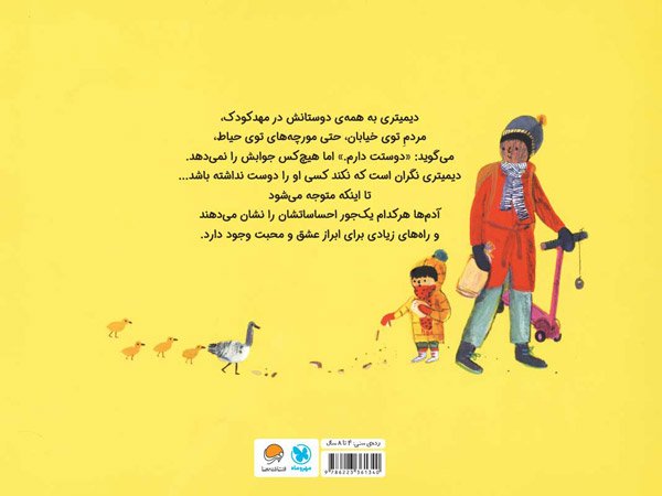 دیمیتری به همهی دوستانش در مهدکودک، مردمِ توی خیابان، حتی مورچههای توی حیاط، می گوید: «دوستت دارم. » اما هیچکس جوابش را نمی دهد. دیمیتری نگران است...