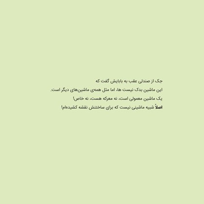 ماشینی که من میسازم،خیلی باحال است. وقتی ببینیاش، دهانت از تعجب باز میماند. اصلاً شبیه هیچکدام از ماشینهایی که تا حالا دیدهای، نیست. خیلی با...