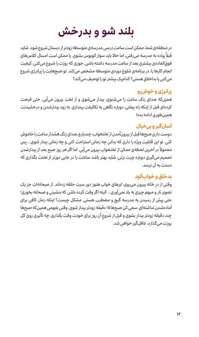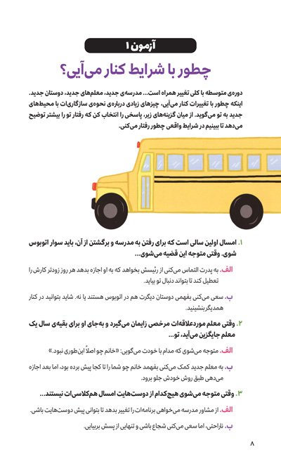 بود. در این کتاب به تو اطلاعاتی درباره ی معلم ها، دوستان، درس های مدرسه و تکالیف خانه و بخش های مختلف مدرسه میدهیم. همینطور هر اطلاعات دیگری که به آن ها نیاز داری تا با