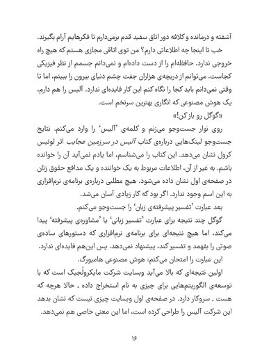 توی اتاق سفید، فناوری های به روز و اینترنت در اختیارش است و حتی به کمک برنامه نویس های هوش مصنوعی قدم به دنیای ارباب حلقه ها می گذارد.