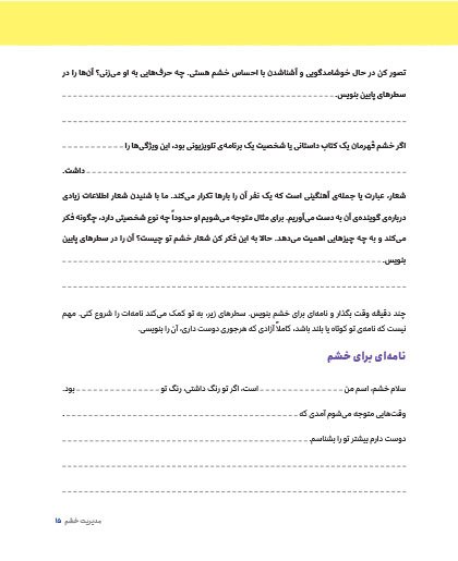 اگر کودک شما بیشتر وقت ها خشمگین است کتاب مدیریت خشم با 40 فعالیت جذاب به کودک شما کمک می کند خشم را مانند سایر احساسات یک احساس طبیعی بداند و سپس با...