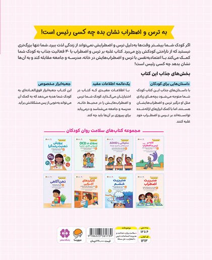اگر کودک شما بیشتر وقت ها به دلیل ترس و اضطرابش نمی تواند از زندگی لذت ببرد، شما تنها بزرگ تری نیستید که از ناراحتی کودکش رنج میبرد. کتاب غلبه بر ترس و اضطراب با 40 فعالیت جذاب به کودک شما کمک می کند با اعتماد به نفس با ترس و اضطراب هایش در خانه، مدرسه و جامعه مقابله کند و به آنها نشان بدهد چه کسی رئیس است!