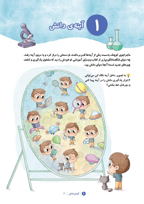 در ادامه ی تجربه ی موفق اولین کتاب از مجموعه ی «برای فردا آماده ای »، این بار سراغ داستانی جذاب تر رفته ایم؛ داستانی که هدف آن، آشناکردن کودکان با ابعاد مختلف به زیستی و احساس رفاه است. این ماجراجویی از یک روز عادی در کتابخانه ی مدرسه آغاز می شود؛ جایی که کودک مشغول مطالعه ی یک کتاب است. اما با ظاهر شدن آینه های اسرارآمیز، کودک وارد سفری هیجان انگیز به دل هریک از این آینه ها می شود. این تجربه ی خلاقانه، تمرینی است برای کودکان سرزمینمان تا بتوانند با دوراندیشی بهتری به ارتقای سطح به زیستی خود در سنین نوجوانی و جوانی فکر کنند. ترکیب داستان، تمرینات سرگرم کننده و برچسب های جذاب، لذت خواندن این کتاب را دوچندان کرده است.