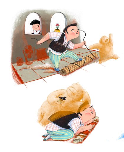 خستگی ها و نفس نفس زدنهای بابا، به خاطر دست وپنجه نرم کردن او