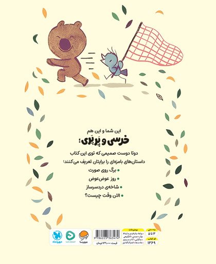 این شما و این هم خرسی و پرپری دوتا دوست صمیمی که توی این کتاب داستان های بامز های را برایتان تعریف می کنند : برگ روی صورت روز عوض عوض شاخه ی دردسرساز...