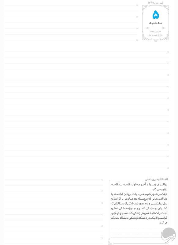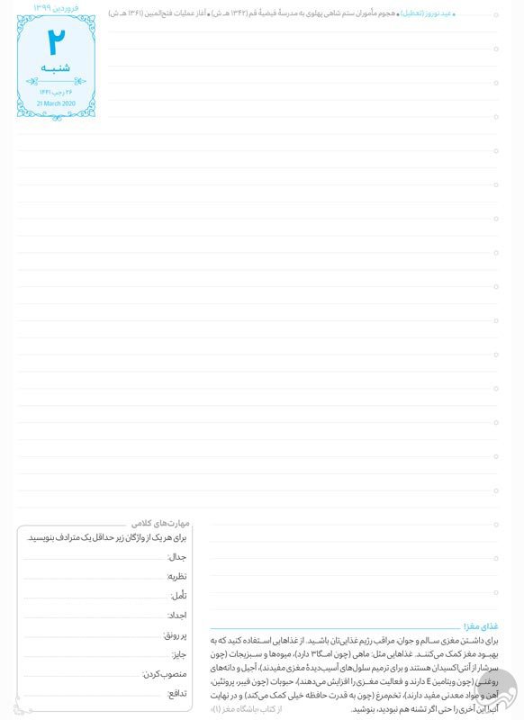 برای نوشتن تجربههای هر روزه، چیزهایی که یاد گرفتید و کارهایی که باید انجام دهید نیز فضای کافی هست.
