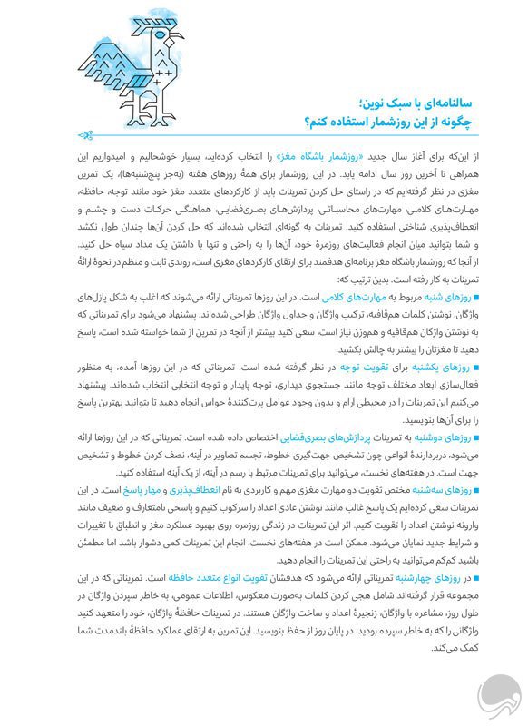 و تصمیم دارد مغز شما را در تمام طول سال، قبراق و هوشیار نگه دارد تا جسمی سالم و روحی شاد داشته باشید...