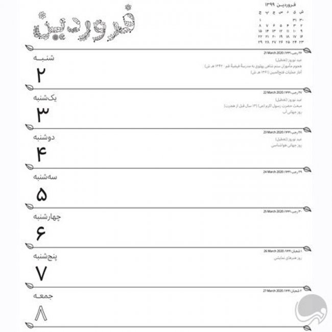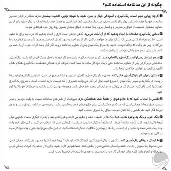 سالنامهی هفتگی رنگآمیزی 1399 مهرسا