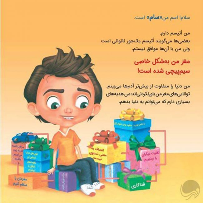 اين كتاب، ماجراى زندگى «سام» است؛ پسرى كه با اختلال «اتُيسم» زندگى میكند و ش بهصورت خاصى سيمپيچى شده است. پسرى كه میخواهد شما نيز او را بشناسيد و بدانيد كه ديدنیها و صداهای اطرافش را چگونه درك میكند. سام میداند كه با همسالانش متفاوت است؛ مثلاً جمعيت زياد و صداهاى بلند او را میترساند، حتى در آغوش گرفته شدن او را ناراحت میكند. رفتارهاى متفاوت او، مانند بالبالزدن يا چرخيدن، به نظر همه غيرعادى میآيد اما شايد اين تنها روش سام براى سازگار شدن با محيط است. برخلاف ظاهرش، تمايلات و سرخوردگیهاى او مانند كودكان ديگرست؛ او هم مثل همهى كودكان دوست دارد با همسالانش بازى كند، در جمع ديگران پذيرفته شود و مثل ديگران دوست داشته شود.