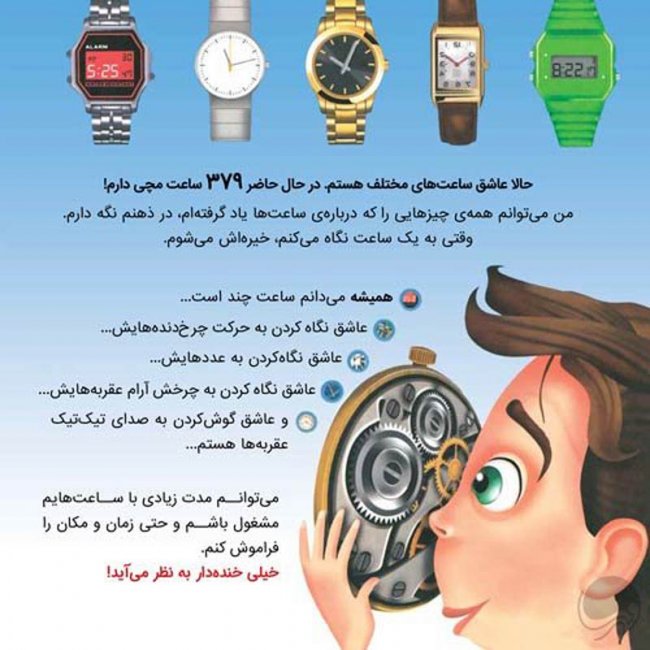 این داستان تاثیرگذار به فهم و درک ما از اوتیسم، رفتارها و واکنش های غیرعادی کودکان مبتلا بسیار کمک میکند؛سام ابتدا شیفتهی قطارها بود و حالا عاشق ساعتها است (او کلکسیونی از ساعتهای مختلف دارد) و میتواند خیلی سریع راجع به ساعتها حرف بزند.