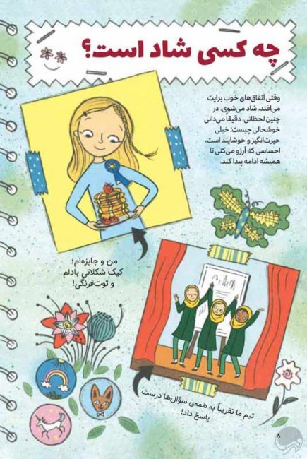 این کتاب پُر از نکته، فعالیت و ایده است. بهعلاوه، راهکارهایی به تو یاد میدهد تا بتوانی آرامشت را حفظ کنی، لذت بیشتری ببری، اعتمادبهنفس داشته باشی، صادقانه با کسانی که دوستشان داری ارتباط برقرار کنی، روی موارد مهم تمرکز کنی، بعد از هر شکست دوباره انرژیات را به دست بیاوری، از ته دل بخندی، روزبهروز قویتر شوی و شادترین دختر روی زمین باشی.