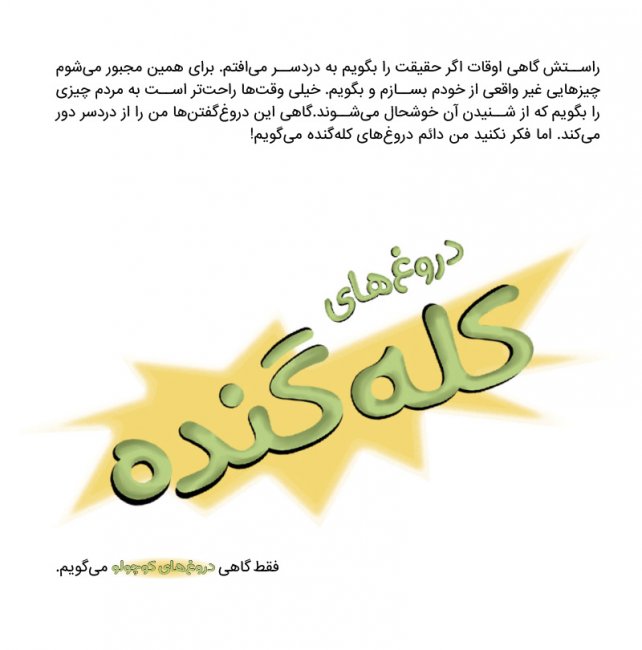 2) این کتاب بسیار آموزنده است و به خوبی حس دروغگویی را برای کودکان مجسم میکند و اجازه میدهد کودکان از دروغگویی تصویری ملموس و عینی داشته باشند.