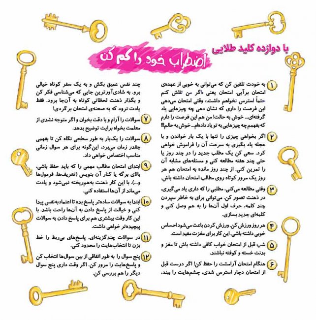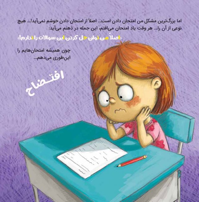 «هر وقت کلمهی امتحان را میبینم یا میشنوم، موهای تنم سیخ میشود، صورتم مثل لبو سرخ میشود، بدنم عرق میکند، معدهام درد میگیرد و پاهایم شروع میکنند به لرزیدن میکنند. نکند همهی سوالها را اشتباه پاسخ بدهم! نکند هیچ کدام را درست ننویسم!»