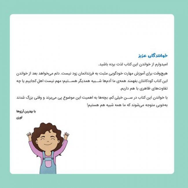 - خیلی خوب است که بدانی تو هم شبیهه دیگران هستی. بیایید کودکان شاد، خلاق و مثبتاندیشی پروش دهیم.