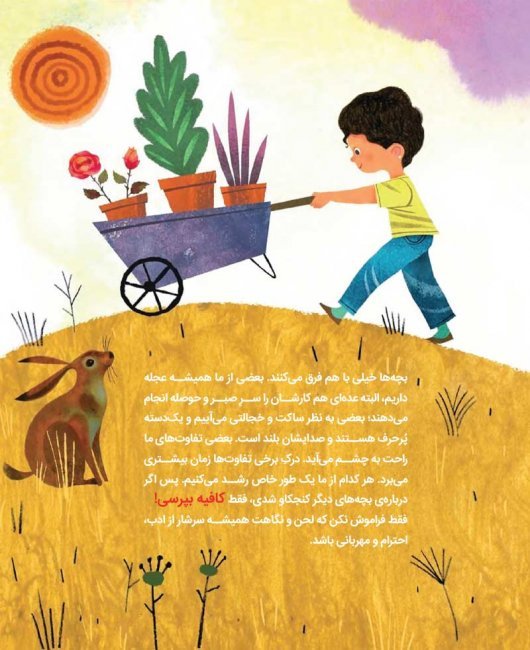 شاید متفاوتبودن برای کودکان سخت باشد؛ اما همانطور که گیاهان مختلف و متنوع و گلهای رنگارنگ و جورواجور باغ را زیباتر و شادابتر میکنند تفاوت های انسانها هم باعث زیبایی جهان پیرامون ما میشود.