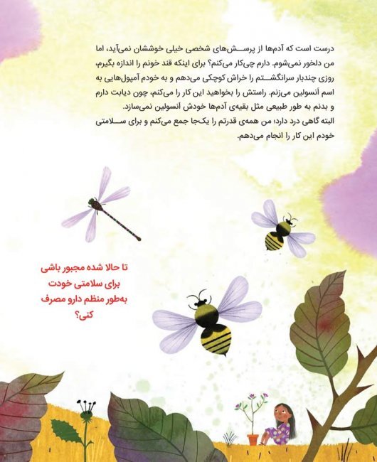 - کتاب بینظیری که شخصیتهای مختلف آن همگی کودک هستند، و بیماریهایی مانند دیابت، آسم، ناتوانی جسمی، حرکتی، دیداری یا شنیداری یا مشکلات دیگری مانند اوتیسم، لکنت زبان، بیشفعالی، آلرژی و... دارند و به کودکان میآموزد تفاوتهای ما باعث زیبایی جامعهی انسانی و جهان اطراف ما میشود.