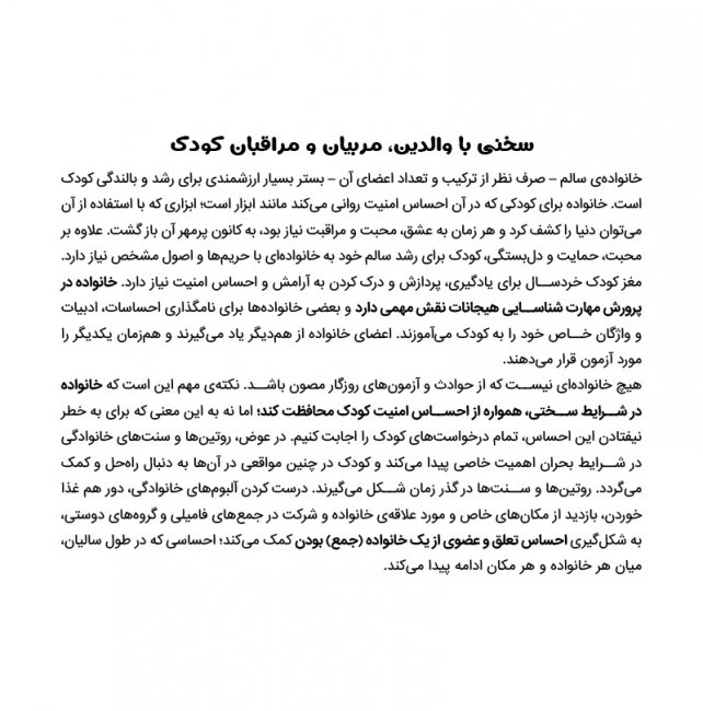 هر کدام از خانوادهها، شکل و اندازهی خاص خود را دارد. با کمک خانواده احساس میکنیم به چیزی تعلق داریم. عشق، یاری و حمایت خانواده تا همیشه با ماست......