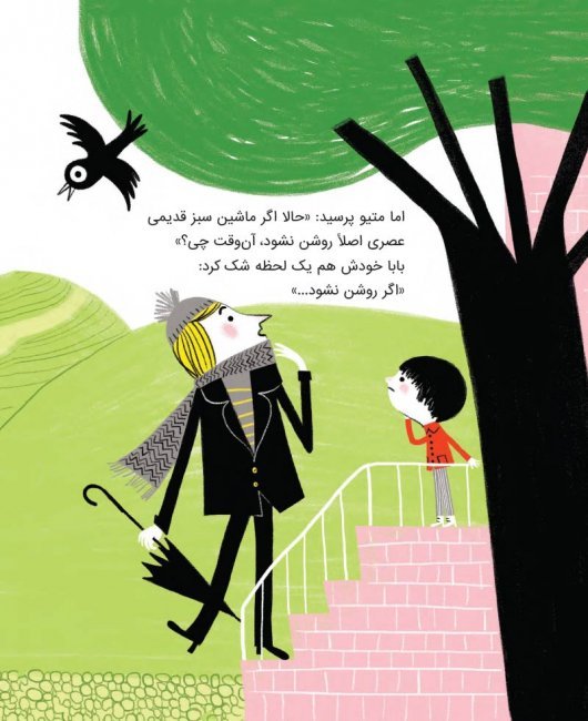 آن روز صبح بابای متیو هر کاری کرد ماشین سبزش روشن نشد که نشد. متیو هُری دلش ریخت که نکند بابا عصری نیاید مدرسه دنبالش. بابا هم که دلش نمیخواست...
