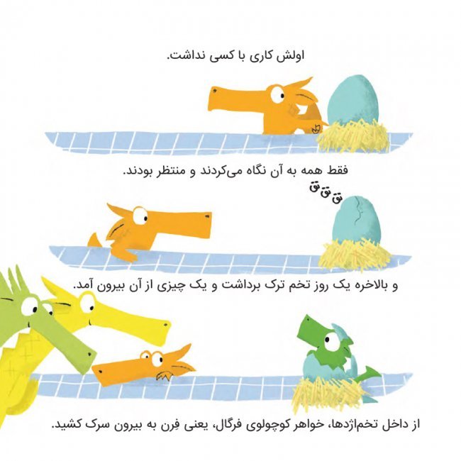 2) این کتاب اوقات خوشی را برای بچهها و پدر و مادرها فراهم میکند و برای بچههایی که ممکن است در این شرایط باشند پیام مفیدی را به همراه داشته باشد. این کتاب سرشاز از تصویرهای شاداب و رنگارنگ است که به شخصیتهای داستان جان میبخشند. مطمئنا این کتاب چندین بار خوانده میشود.