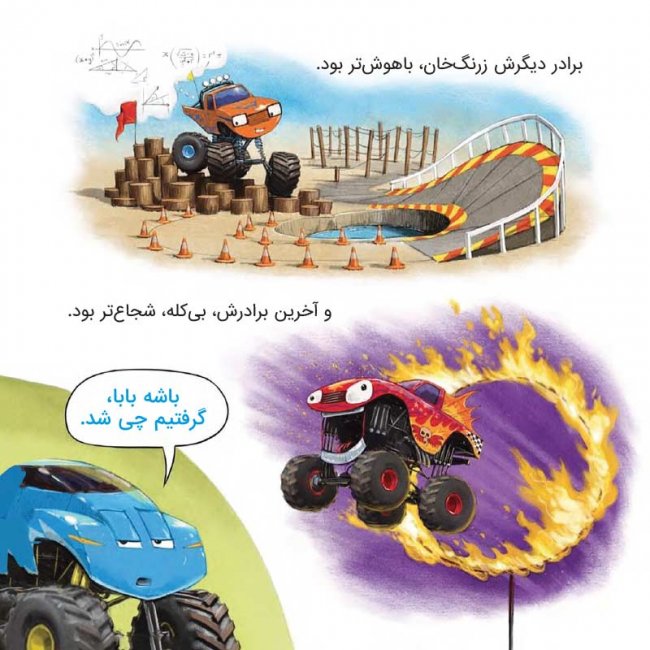 1) پسر دو سالهی من خیلی از روابط خانوادگی بین کامیونها خوشش میآمد، مخصوصا اینکه هر کاراکتر برای خودش یک شخصیت منحصربهفرد داشت (من هر عضو خانواده را با یک صدای متفاوت برای او میخواندم). البته فکر نمیکنم که او در 2 سالگی چیزی از مفاهیم کتاب – پشتکار، هدفگذاری و پذیرش خویشتن- سردربیاورد اما مطمئن هستم که از تصاویر و داستان خوشش آمده. بهشخصه، از اینکه مکانیک یک زن بود خیلی خوشم آمد.