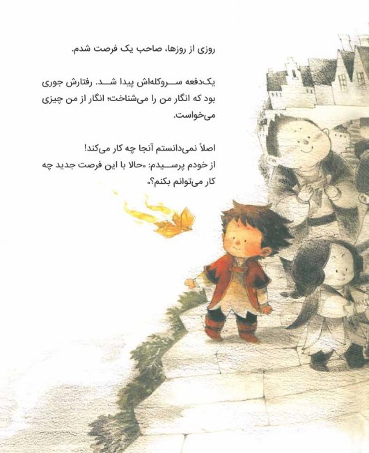 این داستان جذاب و گیرا دربارهی کودکی است که نمیداند چگونه از فرصتهای پیش رو استفاده کند، البته بعد درمییابد اگر شهامت داشته باشد و به استقبال تجربههای جدید برود، اتفاقات هیجانانگیزی رخ میدهد. در این داستان، کودک وقتی با اولین فرصتش روبهرو میشود نمیداند چطور از آن استفاده کند؟ و این فرصت را بدون استفاده رها میکند. اندکی میگذرد، وقتی سروکلهای فرصت تازه پیدا میشود، اینبار به سمتش میرود، اما به زمین میافتد و آن فرصت دوباره از دستش پَرمیکشد، خجالتزده و ناراحت میشود. بهرغم اینکه به دنبال استفاده از فرصتهاست، اما به هر فرصتی که از کنارش میگذرد بیاعتنایی میکند... تا روزی که میفهمد نیازی نیست همیشه شجاع باشد، فقط کافی است سر بزنگاهها دلیر باشد تا با استفاده از فرصتها، اتفاقات هیجان انگیز بیافتد.