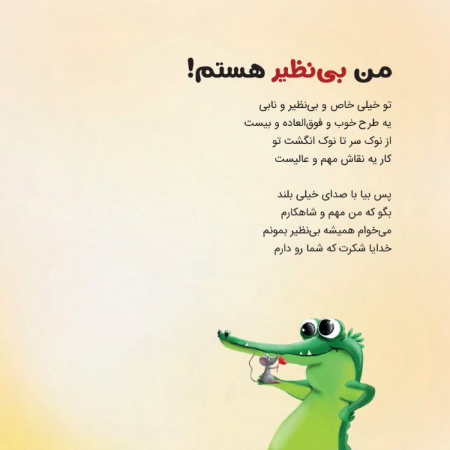 - این کتاب با اختلاف زیاد، بهتریــــن کتاب کودک موجود در دنیاست. من همیشه از این کتاب برای افزایش اعتمادبهنفس مراجعانم در مطب استفاده میکنم. ای کاش این مجموعه کتابهای بیشتری داشت.