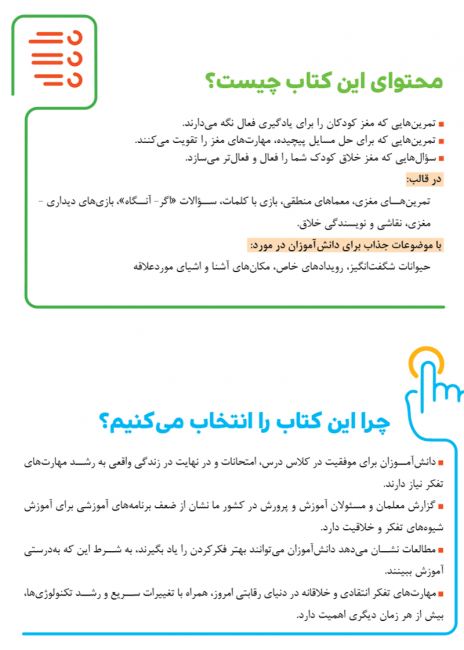 تمرینهای مجموعهی «باشگاه تفکر و خلاقیت»، ذهن کودکان را برای یادگیری، فعال نگه میدارد تا مهارتهای ی خود را پرورش دهند. این مجموعهی بومیسازیشده،...