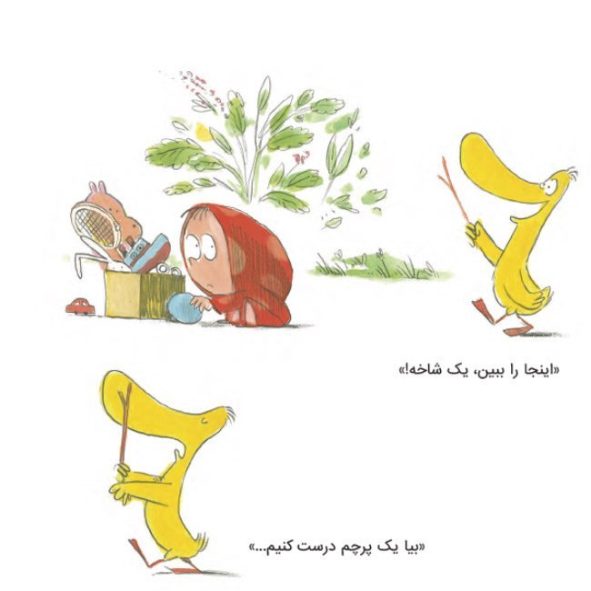 اُرنا فکر میکرد که آن چوب شمشیر است و اردک هم فکر میکرد پرچم است. اما وقتی که اُرنا قبول کرد اسباببازی جدیدش را با اردک تقسیم کند، اردک در مقابل رفتار خودخواهانهی او چه واکنشی نشان داد؟