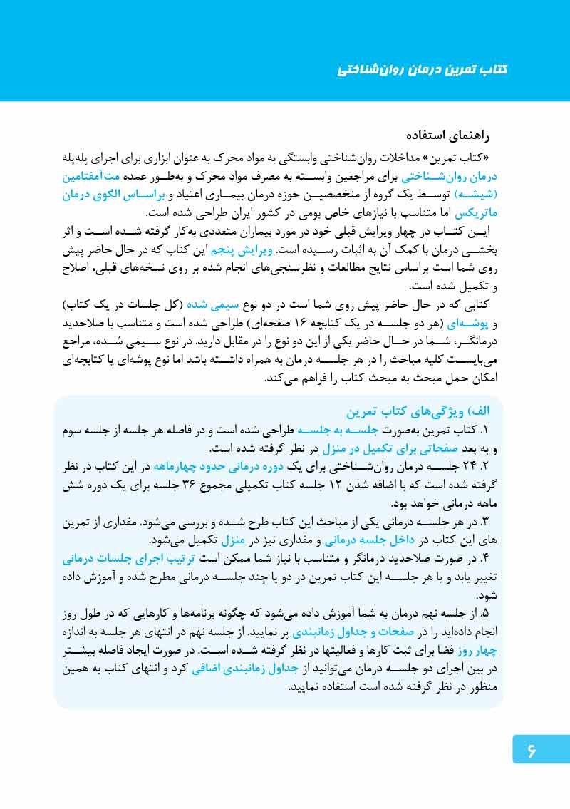 درمان روانشناختی وابستگی به مواد محرك با الگوی ماتریكس اثربخشترین و شناختهشدهترین روش درمان اعتیاد به متآمفتامین یا شیشه است. كتابچۀ تمرین پیش...