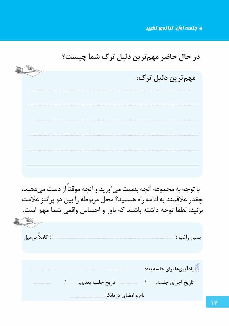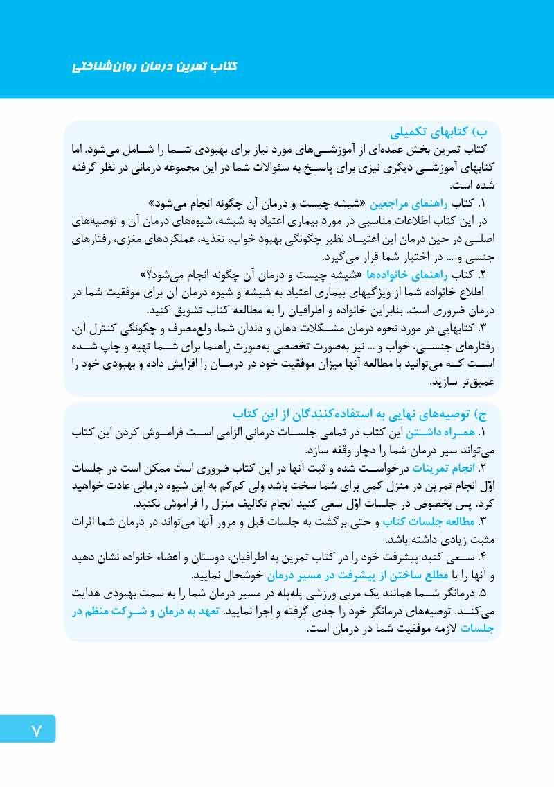 درمان روانشناختی وابستگی به مواد محرك با الگوی ماتریكس اثربخشترین و شناختهشدهترین روش درمان اعتیاد به متآمفتامین یا شیشه است. كتابچۀ تمرین پیش روی شما، حاصل جدیدترین بازنگری و اصلاح این روش درمانی برای مخاطب ایرانی و متشكل از مجموهای از جلسات منظم درمانی و تكالیف آنها است. در این مسیر، درمانگر اعتیاد مانند یك مربی آموزش خلبانی، پا به پای بیمار، روشها و مهارتهای عملی برای بهبود بیماری اعتیاد، مانند مهارتهای پیشگیری از ایجاد ولع مصرف مواد، عود، چگونگی درمان و مدیریت اختلالات جسمی و روانی همراه اعتیاد و مهارتهای زندگی سالم را به او آموزش میدهد. درمانگر در همراهی با بیمار در طول جلسات درمانی با نظارت بر نحوهی اجرای این آموزهها و مهارتها تلاش كرده تا اشكالات احتمالی وی را اصلاح نماید. اجرای كامل و مستمر این دوره درمان روانشناختی، بهبود قابل توجهی را در بیماران وابسته به مواد محرك ایجاد خواهد نمود.