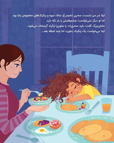 وقتی مادربزرگ به او میگوید که قلب روزهداران هم مثل چراغها، براق و نورانی میشود. او مشتاق شود تا روزه بگیرد، اما خیلی زود میفهمد که نمیتواند ... لیلا یاد میگیرد که هزار راه برای شرکت در مهمانی خدا هست.