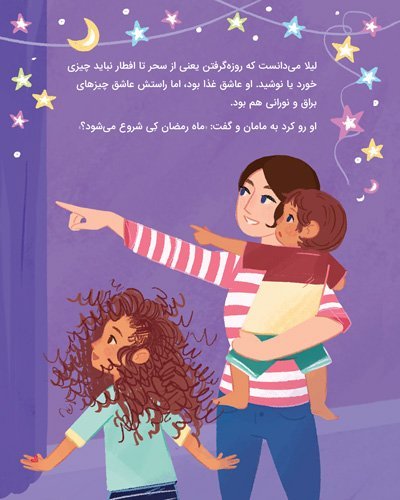 من خیلی دنبال کتابی میگشتم تا با بچههایم دربارهی ماه رمضان صحبت کنم و این کتاب دقیقا همانی بود که میخواستم. دختر بزرگم از کتاب خیلی خوشش آمد و خودش کتاب را برای دختران کوچکتر خواند. این کتاب به آنها کمک کرد تا درک کنند که حتی اگر روزه نگیرند، باز نقش مهمی در ماه رمضان دارند و احساس جاماندن از بقیه را نداشته باشند.
