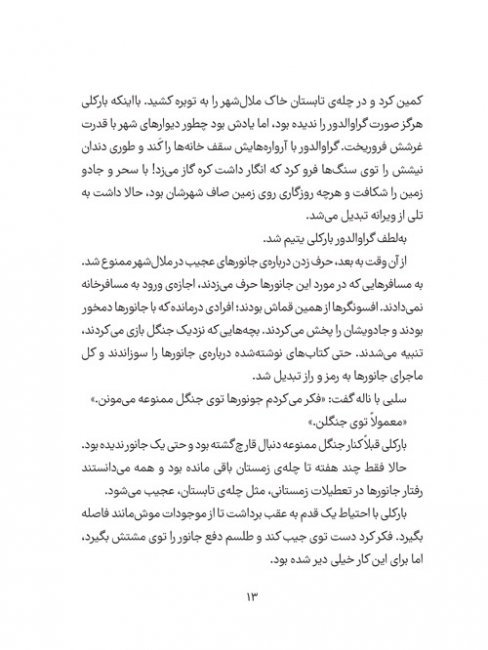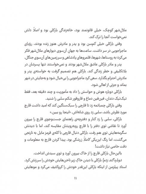 ملال شهر روی تپهای گرد و قلمبه کز کرده بود و دورش هم دیواری سنگی چیده بودند که بهخاطر نیزههای رویش شبیه بوتهی خار غولپیکری شده بود. اهالی...
