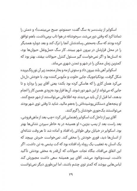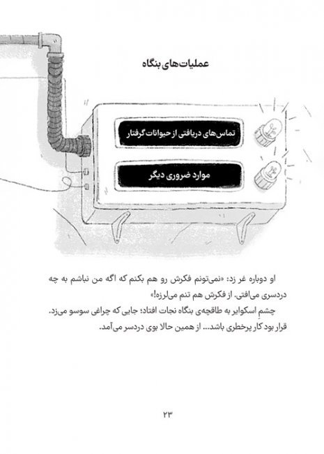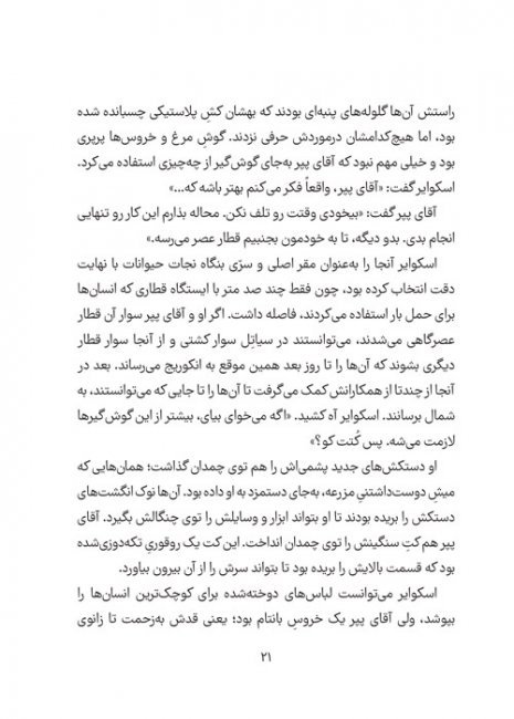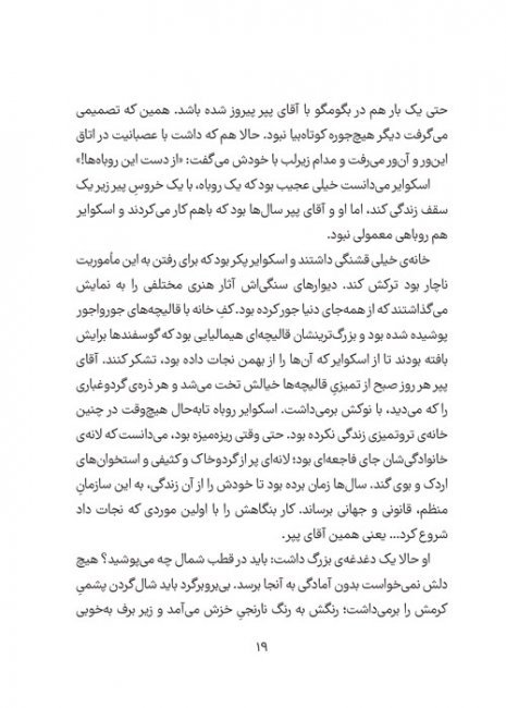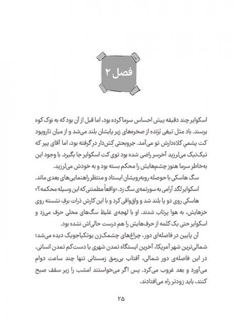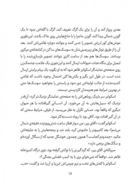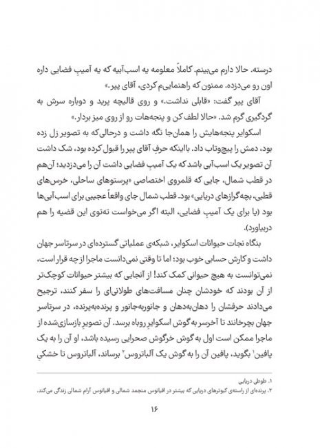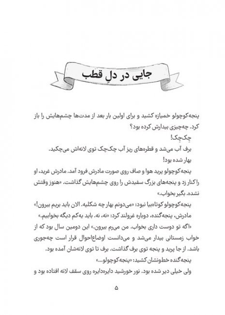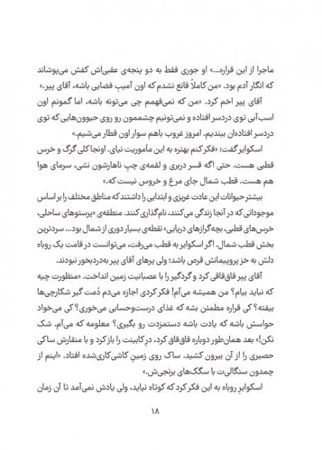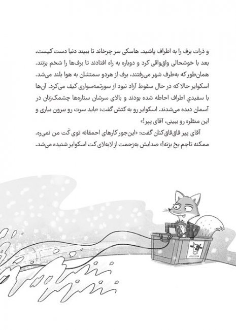 اسکوایرِ اسکوایرِ روباه نارنجی خوشتیپ و دستیارش آقای پپر شبکهی عملیاتی گستردهای در جهان دارند. اگر کسی به دردسر بیفتد حرفها دهانبهدهان، جانوربهجانور و پرندهبهپرنده در کل جهان میچرخد تا آخرسر به گوش اسکوایر برسد. این خبر هم اول به گوش خرگوش صحرایی رسید. او هم به پافین گفت. پافین آن را به گوش آلباتروس رساند. آلباتروس هم پر کشید و برای گرگ تعریف کرد. گرگ با گلهاش دوید تا گوزن شمالی را پیدا کند. گوزن ماجرا را با شاخهایش روی خاک کشید. موش کور هم تصویر را حس کرد و آن را نقاشی کرد و از تونلهای تودرتو به دست سوسکهای ساکن کتابخانهی مرکزی رساند. سوسکها هم تصویر بازسازیشده را برای بنگاه نجات حیوانات ارسال کردند. بله، متأسفانه پنجهکوچولو به دردسر افتاده بود. مرد کلاه خز سفید بهسر در قطب پنجهکوچولو را گیر انداخته بود.