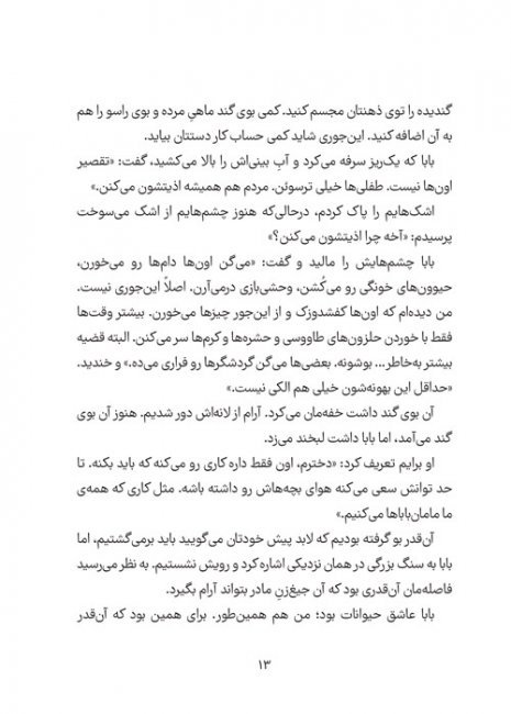 کتاب را که ورق میزنید و چند صفحه که میخوانید، محال است آن را زمین بگذارید. نویسنده چقدر زیبا از اهمیت مراقبت از منابع طبیعی در این کتاب سخن گفته است.