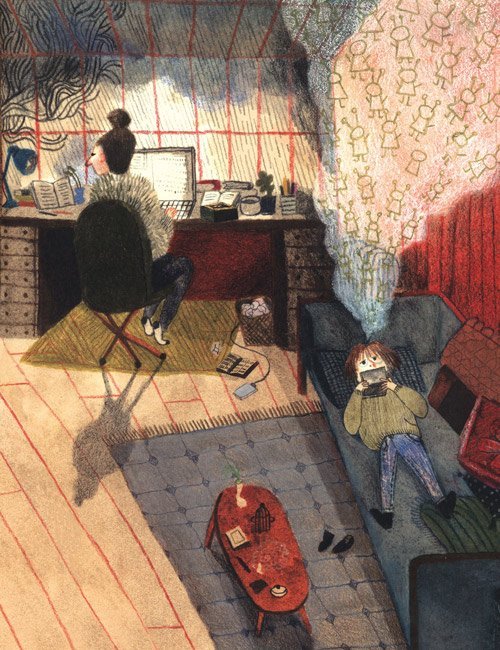 داستان این کتاب دربارهی دختری که همیشهی خدا مشغول بازیهای کامپیوتری هست. حالا او باید با مادرش در یک کلبهی چوبی وقت بگذراند و حوصلهاش حسابی از این موضوع سررفته و به بازیهای کامپیوتری پناه میبرد. وقتی که از یک گذرگاه صخرهای رد میشود، تبلتش را در برکه میاندازد. او غمگین و دلسرد، زیر شرشر باران از تپهها پایین میآید، تازه اینجا توجهاش به موجودات دیگر جلب میشود: حلزونها، قارچها و دنیای زیر خاک. حالا میفهمد که گاهی با هیچکاری نکردن، خاطرات و شادی ما برمیگردد.