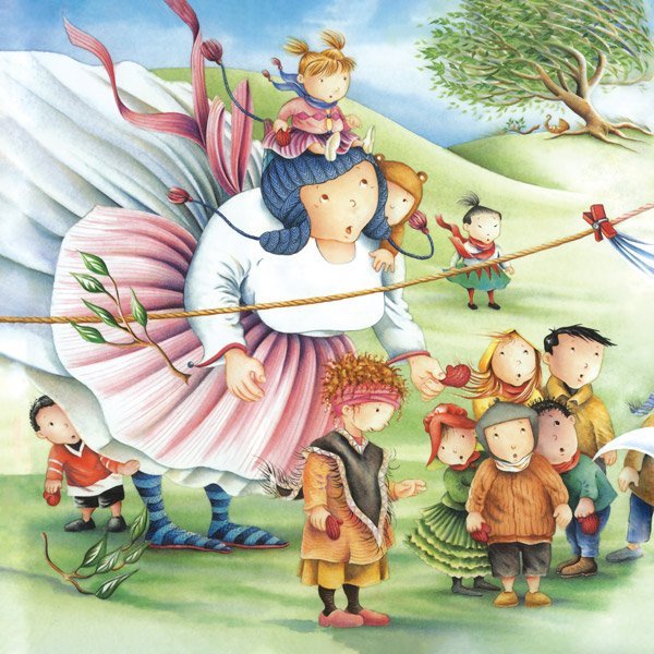 تصاویر آبرنگی و منحنیوار دوریس برت، در سراسر کتاب، از وقتی که باد میوزد و مادر، بچهها، بره، سطل و همه چیز را زیرورو میکند تا وقتی که زندگی به روال قبل برگردد، با متن آهنگین الیس جکسن هماهنگ است. کتاب والدین را سرگرم میکند و بچهها را میخنداند.