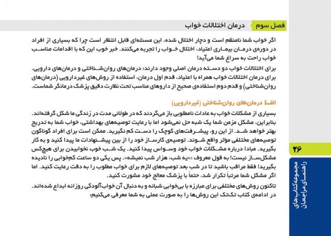 اختلالات خواب متنوع و متعددند و علل متفاوتی دارند اما آنچه مسلم است اثر منفی این اختلالات روی سلامت جسمی و روانی انسان است. اختلال خواب ناشی از مواد، اغلب هم در طی مصرف و هم در دورهی ترك اتفاق میافتد. علاوه بر اين، اختلال خواب میتواند هم كميت و هم كيفيت خواب شما را مختل كند. در این کتاب ضمن تعریف خواب، بی خوابی و کم خوابی به معرفی و توضیح اختلالات خواب و درمان آن پرداخته و چگونگی خواب راحت در طی درمان سوء مصرف مواد را برای مراجعان تسهیل میکند.